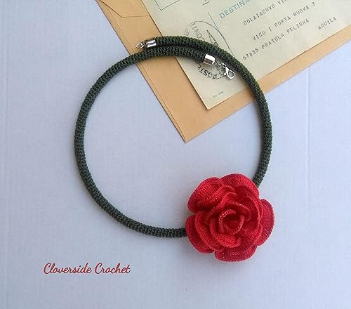 Collier Boho Fleur Rouge Au Crochet Collier Rose Rouge