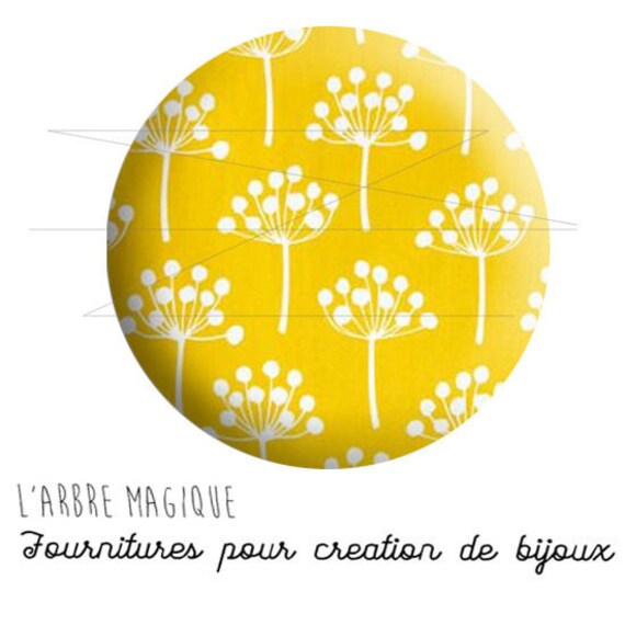 2 Cabochons à Coller Japon Fleur Blanche Fond Jaune Ref 1622 18 Mm