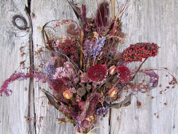 Fleurs Séchées Bouquet Mariage Bordeaux Woodland Naturel Vieux Bleu Mauve Marron Tournesol Sumac Chardon Amour Dans Un Brume Fougère Rustique