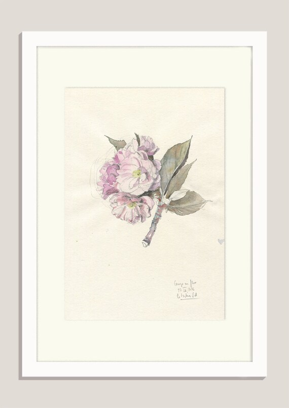 Fleur De Cerisier Dessin 2016 Aquarelle Et Dessin Au Crayon De Dessin Original Botanique De Fleurs De Cerisier 8 X 11 Par Catalina
