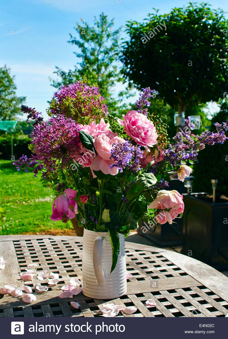 Bouquet Fleurs Lilas Dans Pot Céramique Sur Une Vieille