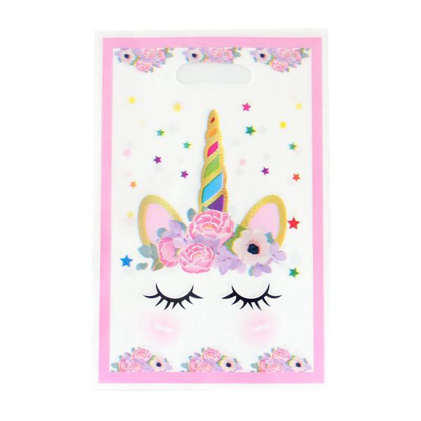 Acheter Fleur Licorne Thème Enfants Filles Faveurs Butin Sacs Anniversaire En Plastique Cadeaux Sacs Baby Shower Décoration Fournitures De Fête De