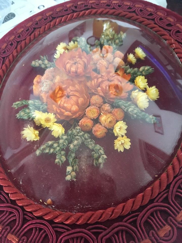 Cadre Ovale Bouquet De Fleurs Séchées Au Verre Bombé