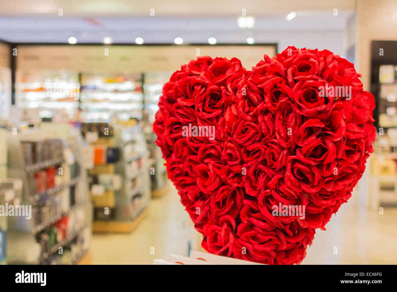 Un Bouquet De Fleurs En Forme De Coeur Devant Un Magasin