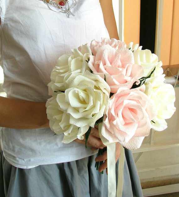Bouquet De Mariage Fleurs En Papier Fleurs Centre De Table Bouquet De Mariée Ivoire Roses Roses Roses Pâles Bouquet De Demoiselle Dhonneur
